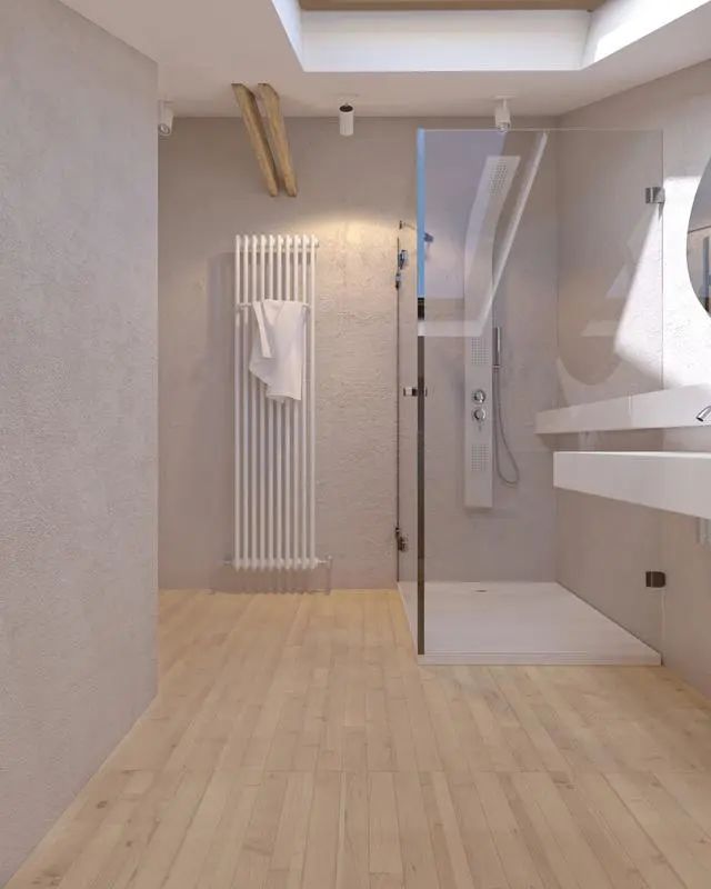 淋浴区一旁还有暖气片,冬天洗澡也不怕冷了!