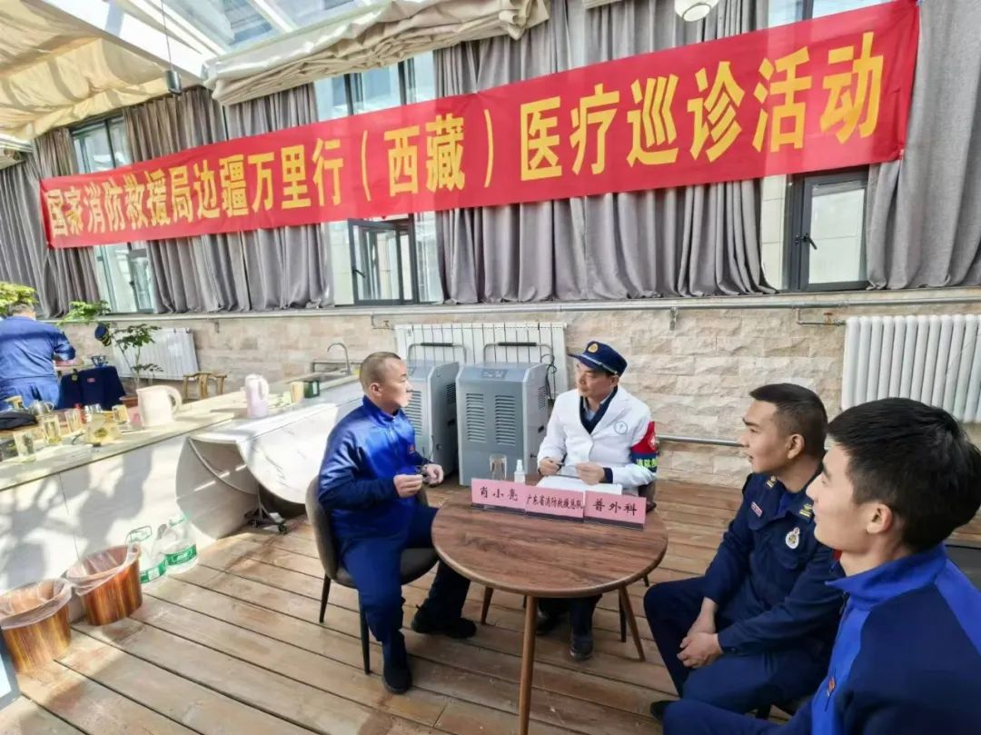 为不断提高消防救援队伍基层医疗服务保障水平,用心、用情、用力做好一线消防救援人员健康服务,进一步巩固提高消防救援队伍的保障力和战斗力,同时做好为基层解难题、办实事的服务要求,近日,国家消防救援局救护与卫勤处丁凡助理带领第二巡诊工作组共10人深入那曲市消防救援支队机关及驻色尼区消防救援队站开展边疆万里行(西藏)医疗巡诊活动,工作组一行人在海拔4525米的那曲市,以坚强的意志,克服高原反应,对150余名消防救援人员及家属进行诊疗。