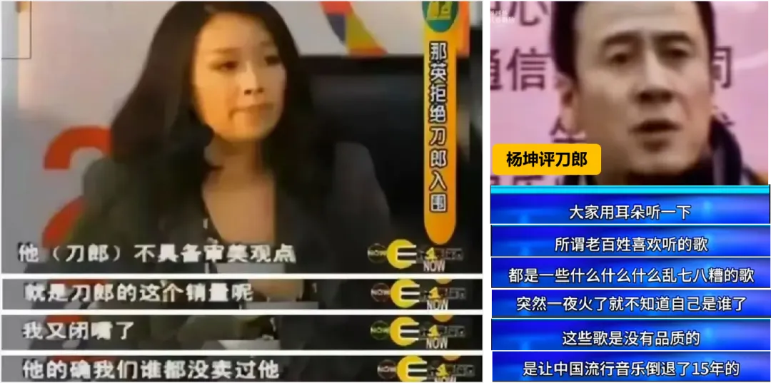 2010年刀郎被提名十大影响力歌手时,当时已是天后的某英,却直言不讳的表示:刀郎在台上他不具备审美观点!就算刀郎的唱片销量再好,好到超越他们也不作数。而老刀的歌,若用公知津津乐道的美西方普世价值那一套评判标准,而不是中国老百姓喜闻乐见的审美标准,确实会如某坤所说的让中国音乐倒退。但这是在中国哦,到底人民群众说了算吧(视频不让发只能截屏,戳下图放大清晰查阅↓)