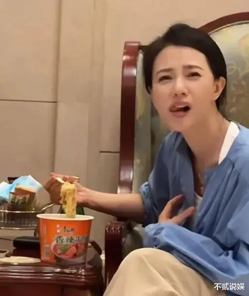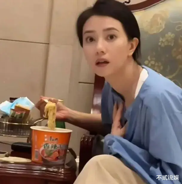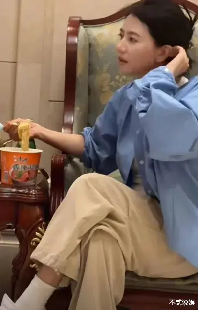她没有因为自己的身份而刻意保持距离,在被拍照时也没有丝毫的不悦或者不自然,反而是继续享受自己的泡面。