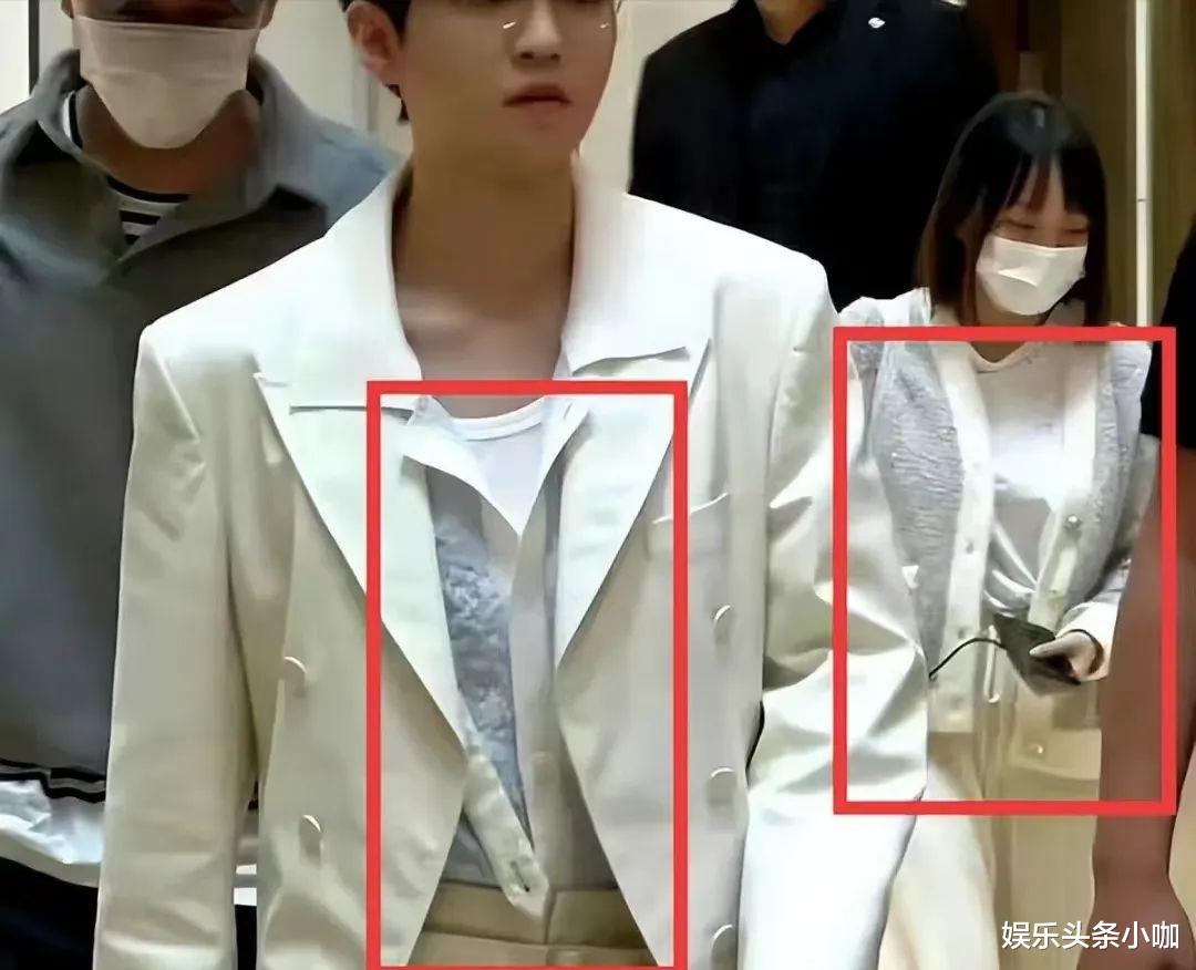 尽管粉丝澄清是路人,但之后又有福尔摩斯网友扒出了另一套王俊凯参加活动的衣服,同样和经纪人是情侣装,甚至比上图更加显眼,