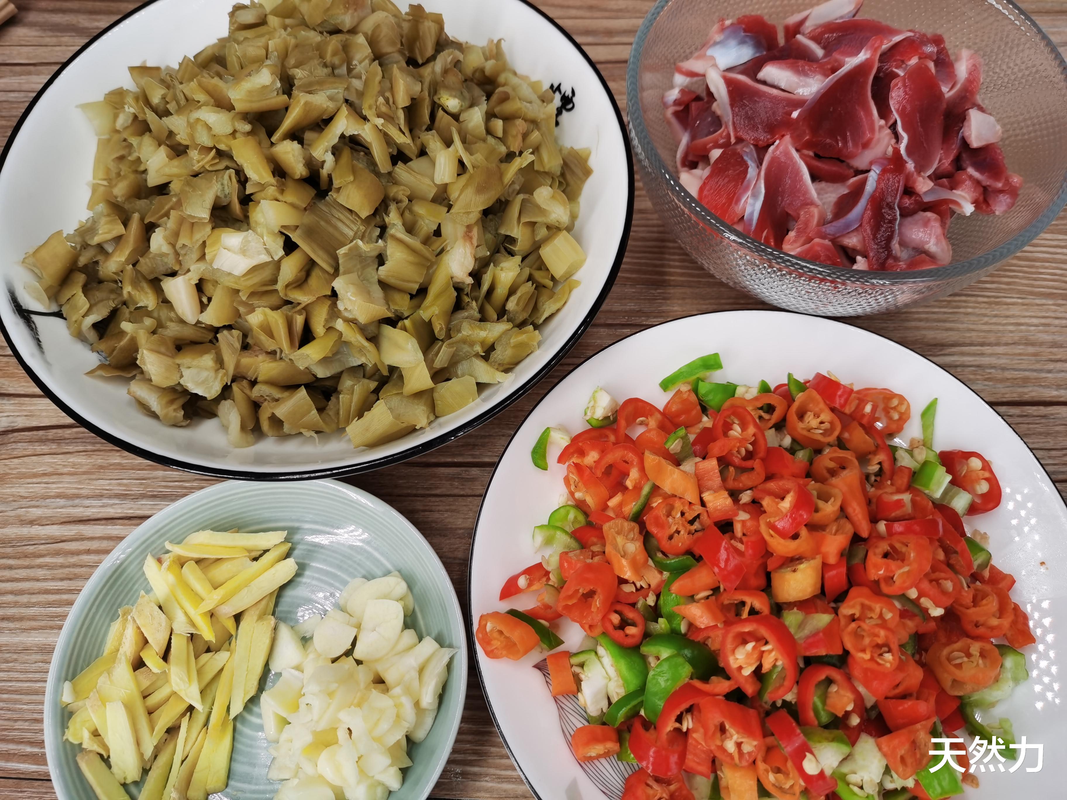要准备的材料有:鸭胗清洗干净后开刀花切片,酸芋荷,辣椒切小圈,姜切丝蒜切片,盐,鸡精,生抽,料酒,油,淀粉。