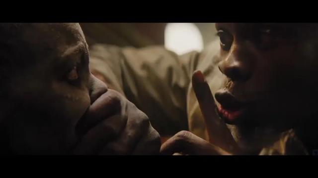 黄毛衣黑人也侥幸从轰炸中存活了下来,不过她满脸都是灰尘,应该是被从废墟中才救出的,而怪物似乎已经入侵到她避难的仓库中,她只能屏住呼吸,祈祷怪物早点离开。从这里开始,似乎幸存的人类,已经知道怪物没有视觉,只要不发出声音,就能瞒过它们。