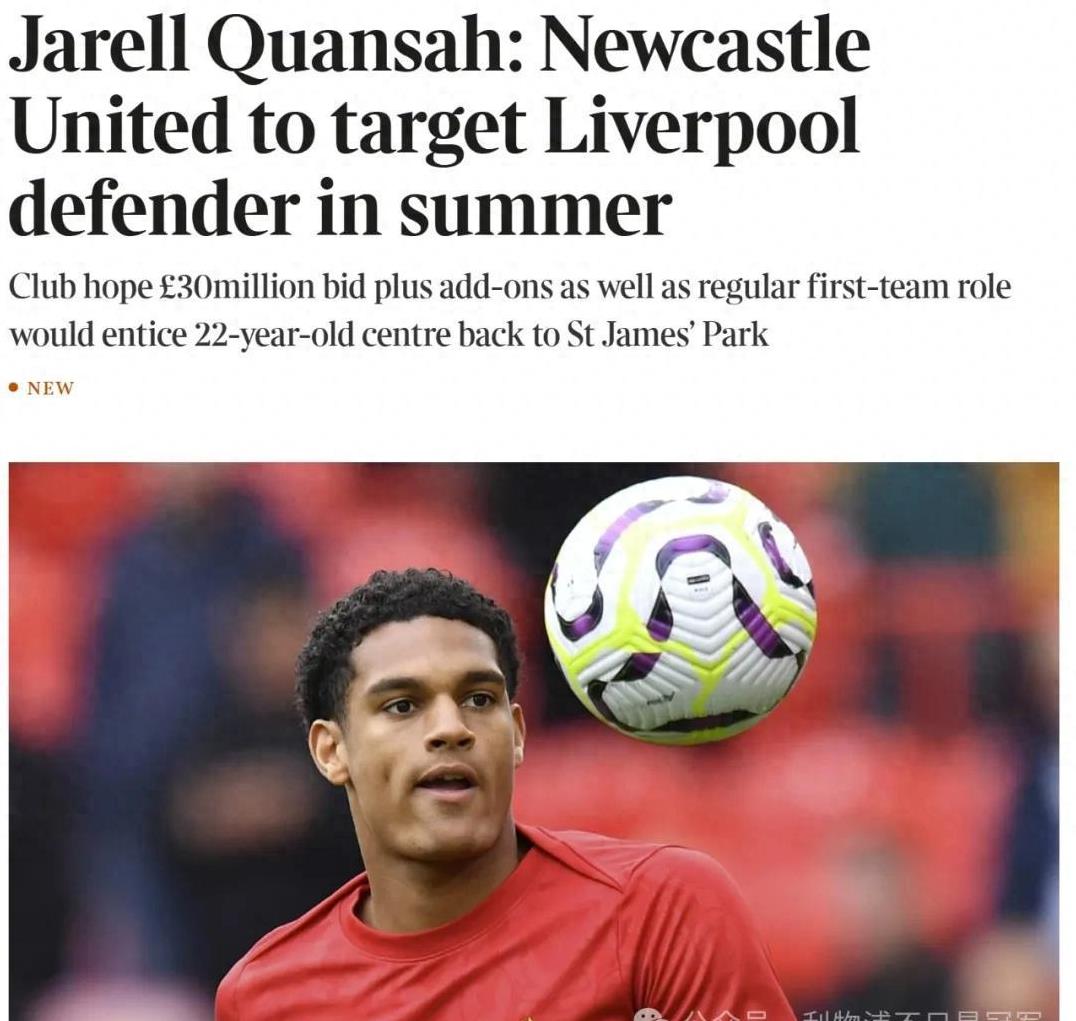 外媒离谱猜想:利物浦或用昆萨换伊萨克说到昆萨的传闻,最近关于利物浦的转会流言,talksport的记者Alex Crook可没少折腾。他的消息虽然不太靠谱,但内容倒是挺吸引人的。他最新爆料的内容是这样的:- 纽卡准备挖利物浦的墙角,目标是伊萨克。就算萨拉赫续约了,利物浦还得买伊萨克。- 虽然纽卡对努涅斯没啥兴趣,但利物浦可以用别的球员来促成交易。- 去年夏天,纽卡差点签下戈麦斯,而利物浦想买戈登的时候,昆萨也被当作潜在的交换筹码。于是,talksport就得出结论:利物浦可能会用昆萨和戈麦斯去换伊萨克。这消息简直太离谱了。不过,《泰晤士报》的报道似乎不是完全没有可能。如果纽卡真的愿意出3000万英镑买昆萨,而利物浦再加5000万英镑买伊萨克,你觉得这个交易合不合适呢?