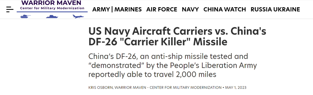 美国《权威战士》网站曾撰文表示,中国的东风-26导弹确实可以击沉航母,解放军近年来已经对东风-26导弹进行了多次实弹打击测试,并成功击沉2000英里外高速行驶的航母目标。
