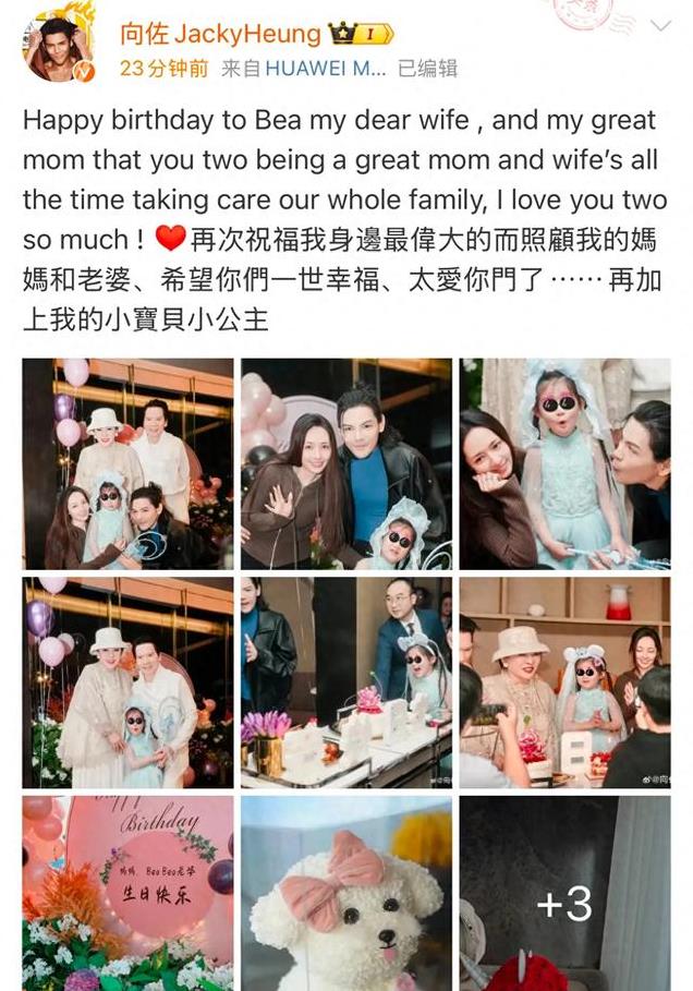 1月17日,向佐在社交平台晒出为妈妈向太以及老婆郭碧婷庆生的照片,并配文“再次祝福我身边最伟大的而照顾我的妈妈和老婆、希望你们一世幸福、太爱你们了,再加上我的小宝贝小公主”。