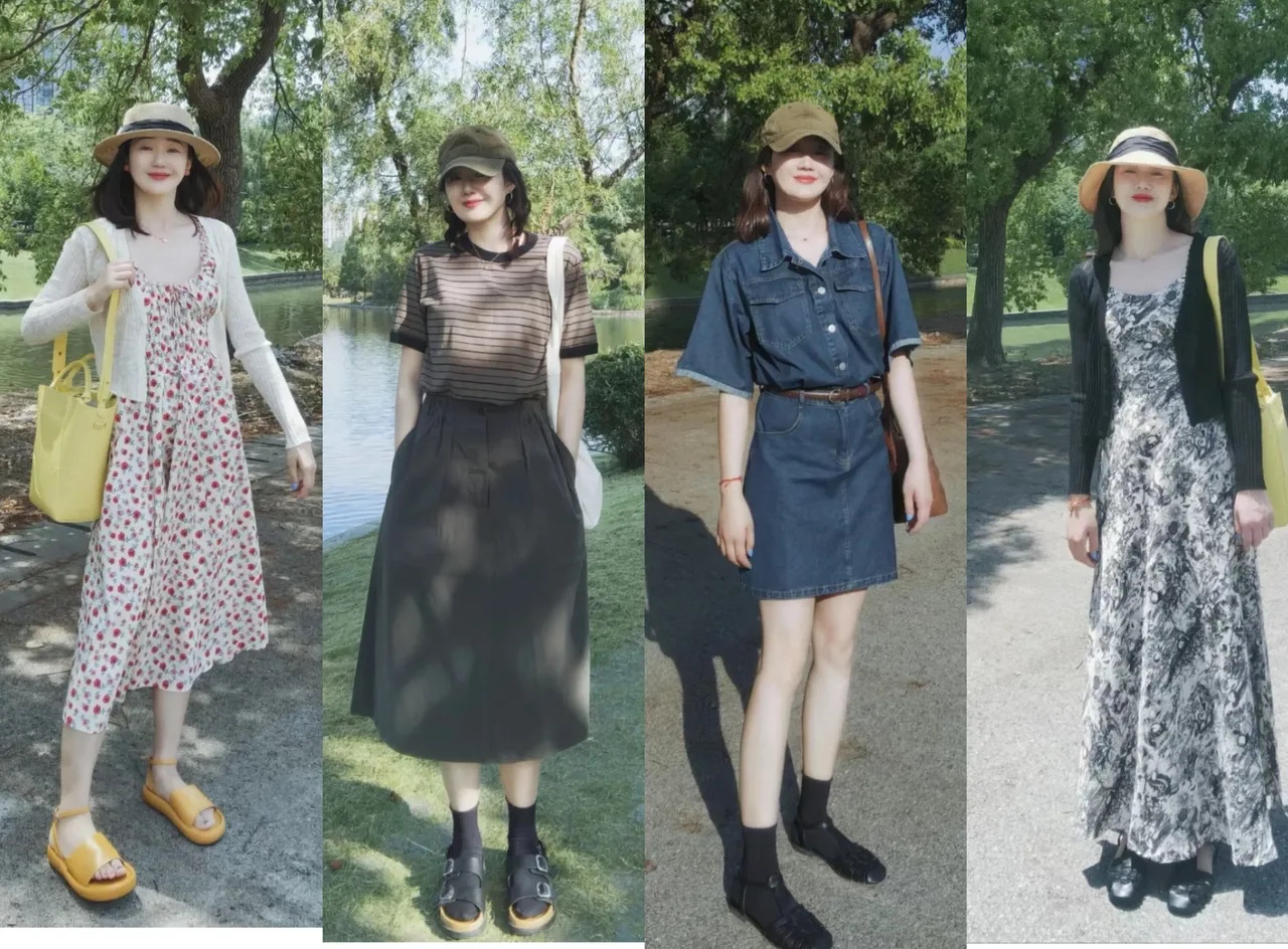 真正适合普通人的穿衣公式是“一半精致、一半休闲”,用女人味的碎花连衣裙搭配厚底凉鞋,或者是条纹T恤搭配法的高腰A字裙,没有按照风格公式按部就班地搭配,反而多一些轻松随意与俏皮活泼的灵动。
