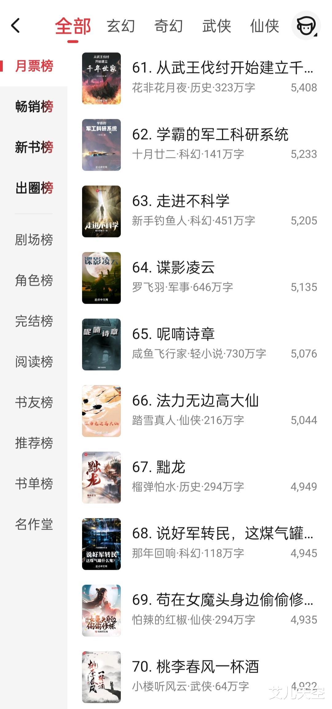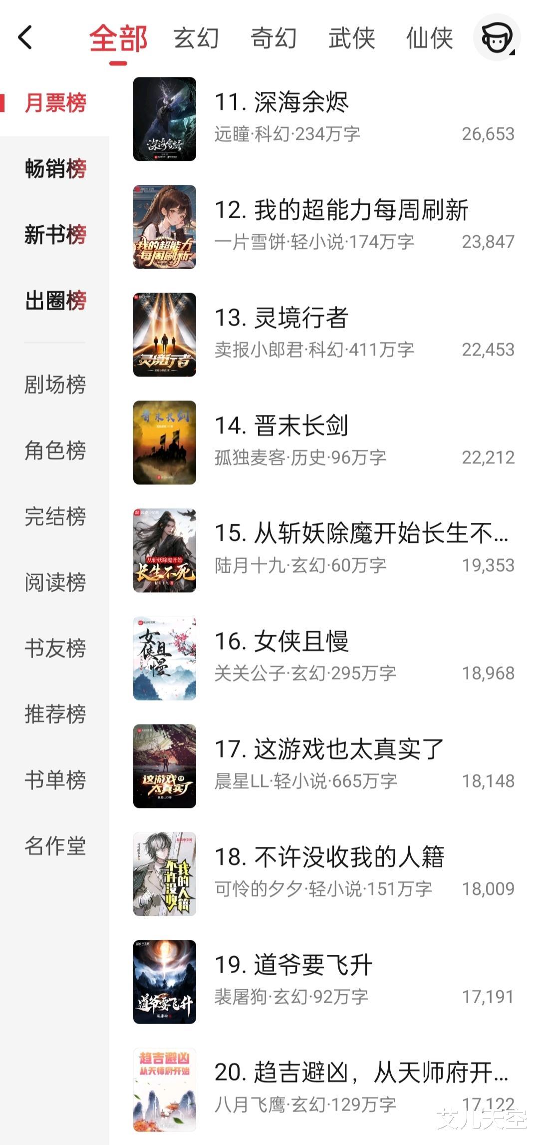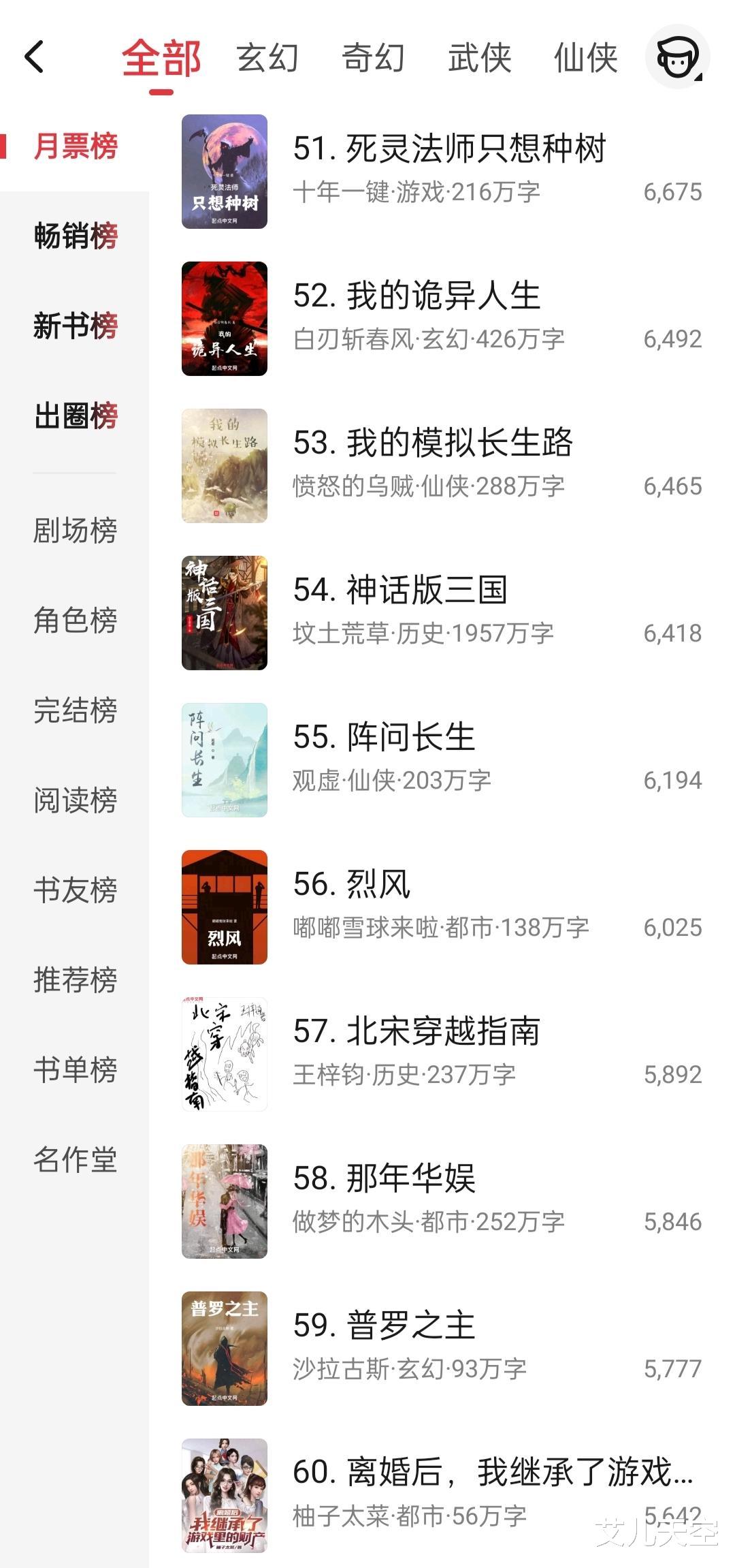 言归正传的《仙父》、耳根的《光阴之外》都跑到诡秘后面了。