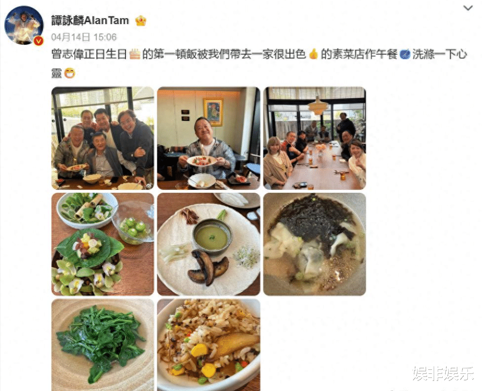 作为曾志伟的老友,谭咏麟在社交平台上分享了几张温馨照片,回忆起他们的生日聚会。谭咏麟透露,生日的第一顿饭,他们选择了一家素食餐厅,这次聚会,既是为了让大家心灵得到洗涤,也是一场简单而有意义的聚餐。看着几位昔日好友其乐融融,大家不仅享受美食,还感受着彼此间深厚的友谊。