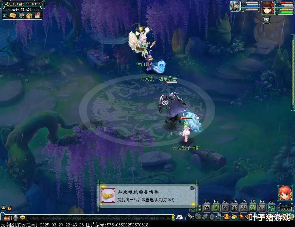 今日,有位小伙伴发来投稿,说自己在逛青丘时,碰见了一只野生涂山瞳。这份看似极好的运气,却令其非常郁闷。毕竟,对于没点猎术的玩家来说,捕捉成功几率是非常低的。因此,这位玩家一连抓了10次都没有成功,最后不得不通过小号送蓝药来维持捕捉所需要的蓝量。不过,猪队长觉得,目前涂山瞳的收购价格普遍在800W左右,这波即便吃一车蛇蝎美人也是值得的!