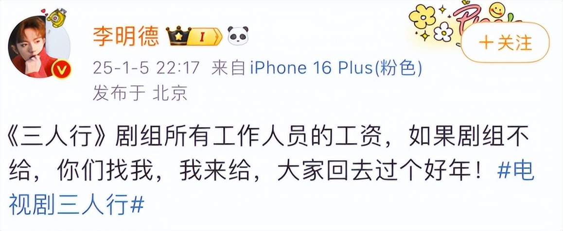 同时,在那几天,李明德也开上了直播。据透露,一场直播收入10万。他本人拿到这笔钱后,发文说给剧组没发工资的工作人员发工资。名和利到达了顶峰,不少网友都在默默共情李明德,并且赞美他“打工人心疼打工人”的做法。