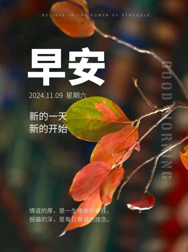 早安,朋友,冬日的寒意悄然降临,寒风吹过,但一句真挚的问候足以温暖心怀。岁月匆匆,无声无息地流逝,惟愿健康和欢乐的笑容却永远在我们脸上绽放。在这逐渐寒冷的季节里,愿你多加保重,愿你所期待的事情都能如愿以偿,愿你担忧的事情都能顺利化解,从此幸福快乐常伴左右,平安健康相随。