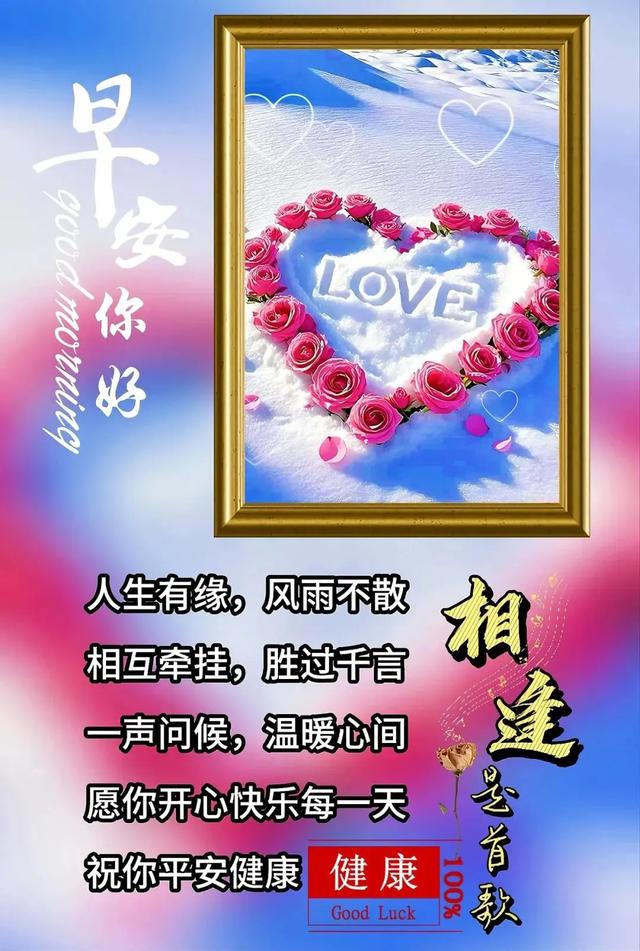 人生如一场漫长的旅程,朝夕交替,冬春更迭,每一个日子都值得我们淡然面对。无论晴天还是雨天,无论喜悦还是忧愁,让快乐永远驻留心间。无论霜雪覆盖大地,还是寒风刺骨,牵挂都是最温暖的陪伴。愿我每天在今日头条的早安祝福如芬芳的花朵,无论寒暖,永远为你绽放。情谊深厚,是一生难舍的牵挂;祝福深沉,是每日真诚的挂念。