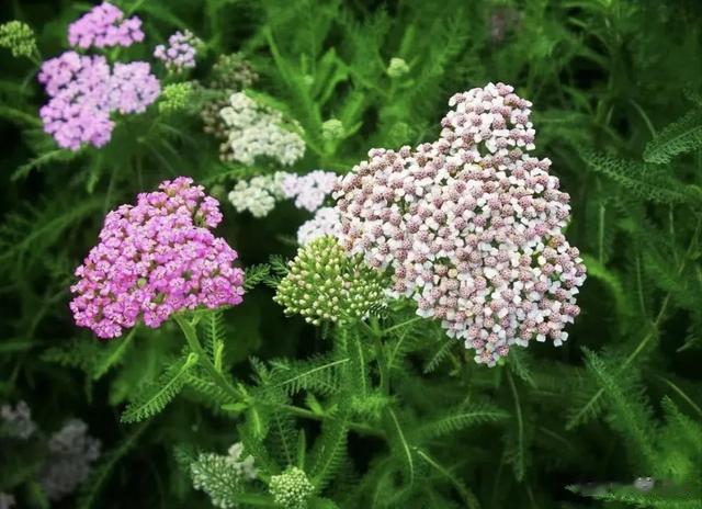千叶蓍草的叶片细长,呈羽毛状,花朵紧密、花瓣结实、不易脱落,而且花色多样,包括白色、粉色、紫色等,为花坛增添了丰富的色彩和层次感。在城市公共绿色用地,花坛花镜,休闲公园等,随时随地都可见干叶蓍草“娇 奢”的身影。