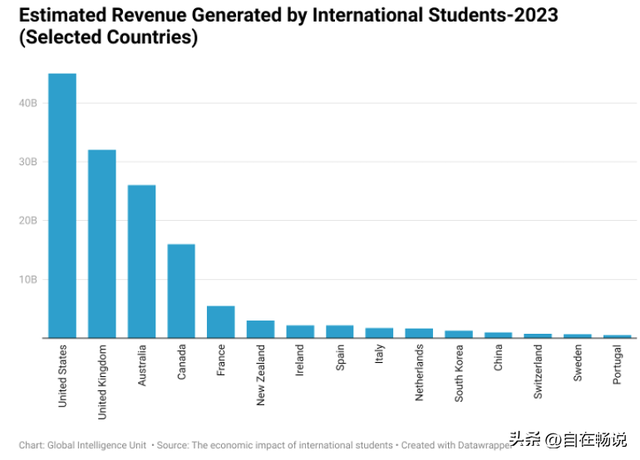 由于美国高校的高昂学费以及在美国生活的高昂成本,美国2023年从国际学生那里获得了的收入达到 400 亿美元,约合人民币2900亿元。