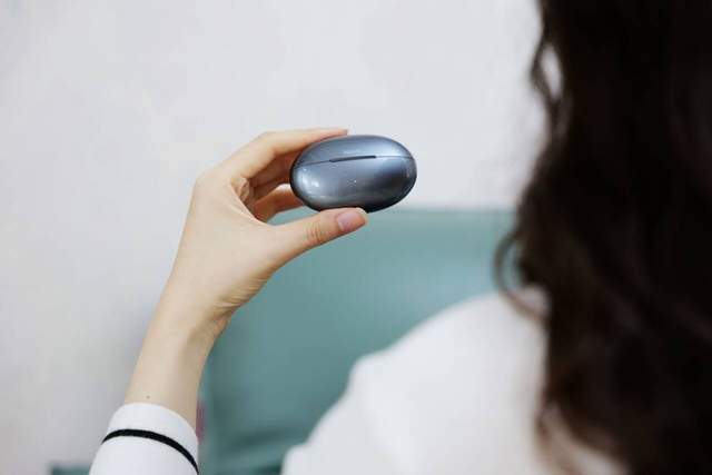 南卡Ultra的充电仓设计非常独特,采用了鹅卵石的造型,握在手里既舒适又有质感,没事还可以在手上把玩把玩。黑色的外观搭配高光细节,显得既大气又时尚。搭配衣服当个耳饰也是相当不错的。