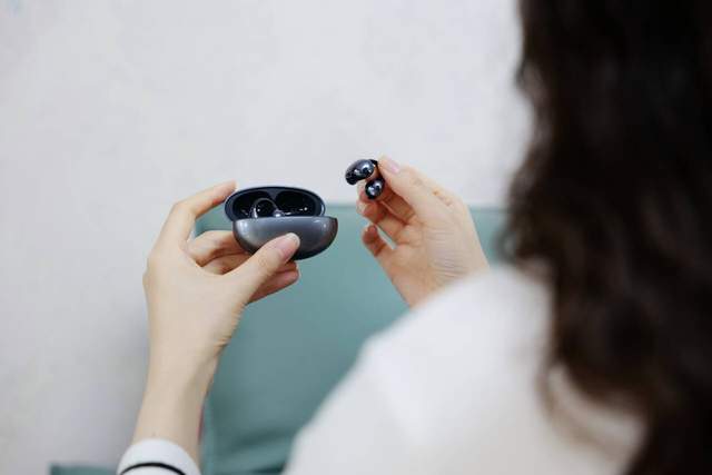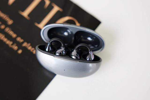耳机的重量只有5.5克,几乎让人感觉不到它的存在。耳夹式的设计恰到好处,能够牢牢固定在耳朵上,即使长时间佩戴也不会感到任何不适。耳机与耳朵接触的部分使用了航空级的亲肤硅胶材质,柔软而贴合,极大地提升了佩戴体验。花花晚上戴出去遛娃儿,娃儿跑得比较快,花花在后面追,耳机也没有滑落,还是可以的。