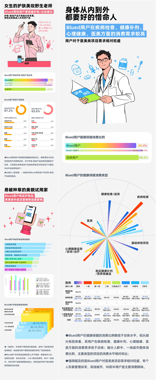 随着收入水平的提高和消费观念的更新,男性消费者逐渐成为市场的新宠。过去,男性消费主要集中在烟酒、汽车、电子产品等传统领域。然而,随着消费观念的转变,男性消费者逐渐将目光投向了更多元化的领域。以Blued 用户为代表的男性消费者正是这一消费趋势的引领者。他们在时尚、美妆、健身、娱乐等方面的消费需求不断增长,展现出前所未有的消费活力。