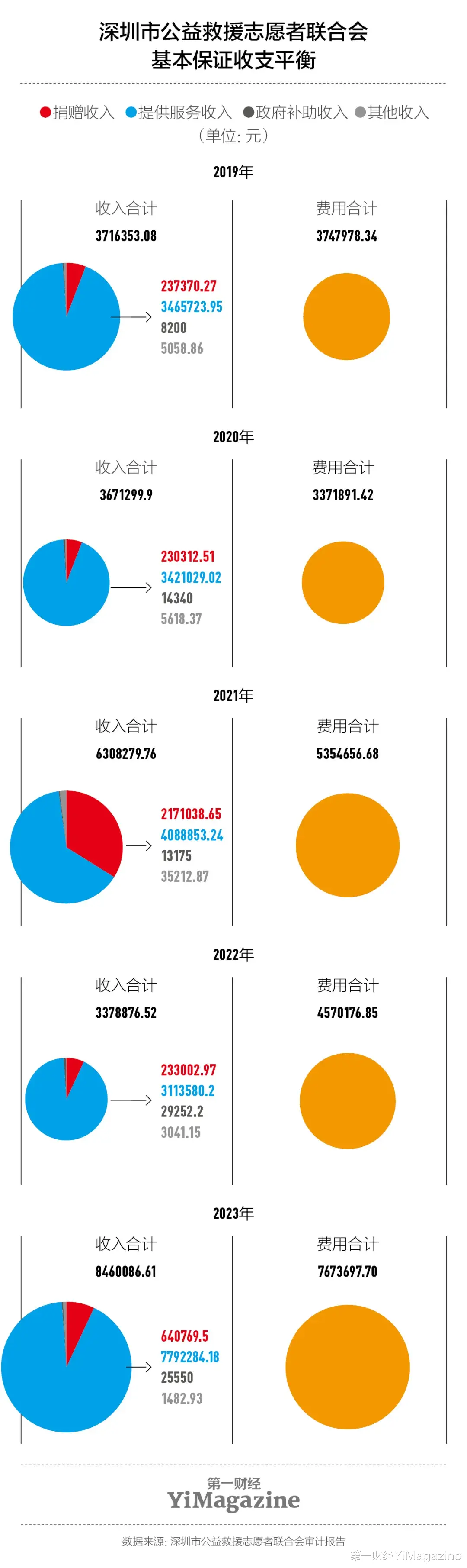 据北京市某区蓝天救援队副队长张兴观察,人员流失是自他2020年加入队伍以来长期面临的一大问题。“疫情3年间很多人居家办公,有较充足的时间参加一线任务。但这两年很多企业开始抓考勤,队员的出勤时间都有限。”如今,甚至连社会企业的防灾减灾宣讲这样的“小”活动,都需要张兴几经动员才能招募到愿意参加的队员。想成为蓝天救援队的预备队员,必须参加训练和任务满200小时,通过队内考核,还得取得AHA或红十字会的急救资格证书、无线电操作证等。张兴所在的蓝天救援队中,达标人数不到报名的10%,“初步估计,2020年至今有300多人进来,如果超过半年未参与任何培训或者任务就会被劝退,如今剩下常出任务的也就40个人,突发现场,比如水域救援,可能连30个人都选不出来。”张兴对《第一财经》YiMagazine说。张兴记得,2021年在河南某地救灾时,当地负责应急力量协调的政府工作人员为了检验救援队有没有能力,直接要求他们打捞被淹没的两具高度腐烂的遗体,“有的队伍听到后掉头就走,这充分显示出很多民间救援队并不具备专业救援能力,甚至只是来灾害现场蹭热度的。”张兴说。在郝南看来,培养一个成熟专业的救援人员至少需要两三年。缺少经验、能力的救援队,即使到达现场,很可能起到的也是反作 用。菠萝救援队则有着相对稳定的人员配置。据王治勇介绍,菠萝救援队由全职队员、普通队员和志愿者组成,其中全职队员有9名。张玉霞就是其中之一,起初她在王治勇的物流公司担任文员,遇到任务时需请假,再以志愿者身份参与救援,2018年一位建材公司老板来到菠萝救援队参观后,被救援队和张玉霞的坚持打动,提出由他承担张玉霞每个月5000元的工资,她只需要做好救援工作。其他几位全职队员的工资也都由爱心企业承 担。一位救援队队长告诉《第一财经》YiMagazine,他们也曾考虑设置全职成员,但一方面队伍资金有限,根本没有支持全职队员的资金,另一方面,如果队伍里同时存在拿工资的全职队员和不拿工资的志愿者,他担心志愿者可能会心理不平衡,不再愿意全力参与救援。“公益还是不要和金钱沾边,不然容易出现问题。”近两年就出现了一些假救援队,很大一部分原因就是出于利益。事实上,2022年菠萝救援队也曾发布公告,表示“受大环境影响,爱心企业断供,5名原专职队员离职”。菠萝救援队的公开财务数据显示,其资金来源主要是社会捐赠,其中企业捐赠占比接近5成。基金会的援助在今年也明显下降。壹基金合作发展总监张銮明告诉《第一财经》YiMagazine,今年,壹基金在开展紧急救灾行动方面同其他同行组织一样,也面临着募集资金不足的问题。在他看来,灾害行动筹款面临的困境,是企业的经济情况、灾害频发、公众对公益慈善组织信任度降低等一系列影响因素共同作用导致的。厦门曙光救援队队长王刚曾在接受采访时透露,今年的行动资金格外紧缺,为了省钱,队伍从厦门出发时自备了50箱面包、21箱自热米饭——往年这些食品常常是救援队向社会表示不需要再捐赠的物品。队伍还在救援车后加了拖板车,车上装了50张行军床,他们由过去的四人住一间房改为只开三四间酒店房间供四五十名队员轮流洗澡,休息时,女队员住酒店,男队员搭帐篷住行军床。自6月中旬起,厦门曙光救援队已辗转福建龙岩、广东梅州、江西景德镇、湖南华容等4省7市参与了多场救援行动,连续不断的极端天气将救援战线大大拉长,大量的资金消耗让王刚也“心里发虚”。近年来,张兴所在的救援队一直在承接区里各类体育比赛的医疗保障服务,以及社区、学校的防灾减灾培训,培训所得的费用会回流到救援队的资金池,用于公益救援。而深圳公益救援队的资金来源除了志愿者无偿资助、社会无偿捐助,还有政府购买服务。郝南认为,深圳公益救援队是民间救援组织中被公认造血机制比较健康的。石欣告诉《第一财经》YiMagazine,2011年,深圳市公益救援队开始与壹基金合作,提交救援行动的资金花费明细,能得到5万元到10万元不等的救援赞助费用。2016年它进入深圳市政府采购名录,开始承接政府竞标项目。近两年的年审报告显示,政府采购服务占到其收入的近8成。