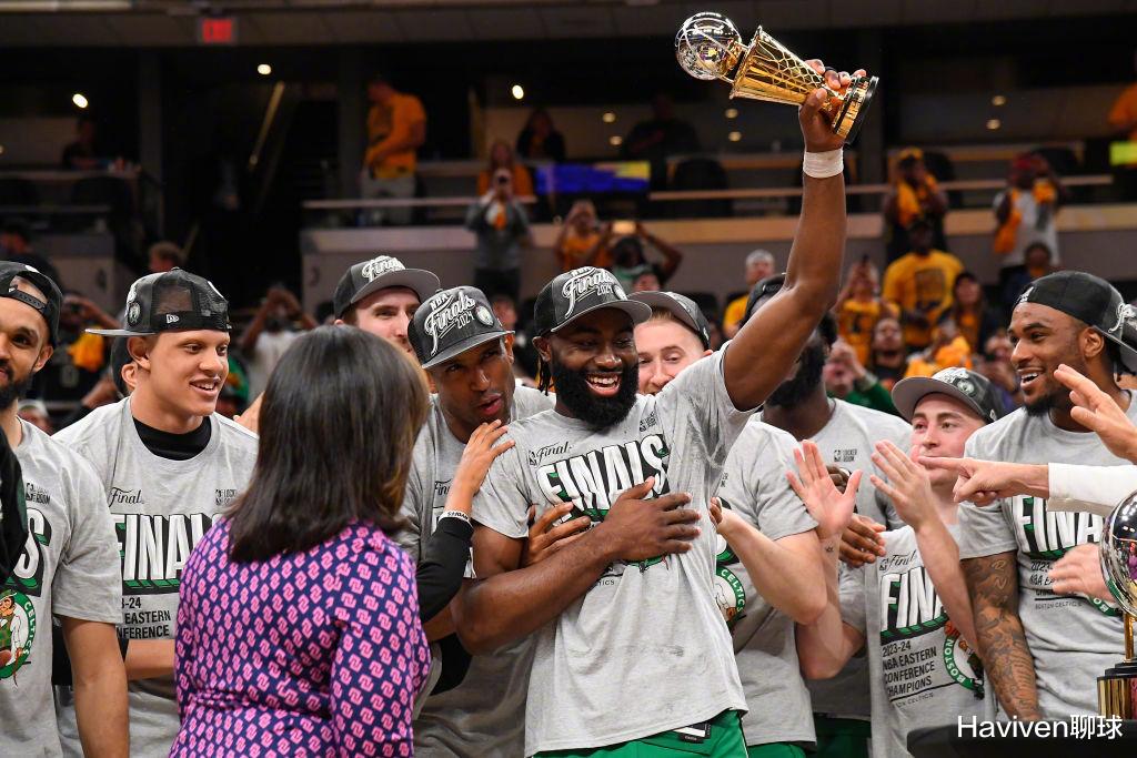 东决结束后,球迷们最关心的,是东决MVP的归属。最终,给到了杰伦·布朗!在杰伦·布朗接过奖杯的时候,杰森·塔图姆还是很高兴的。所以,现在问题又来了,凯尔特人的老大到底是谁?今天杰伦的数据是,22投11中,29分6篮板2助攻3抢断;塔图姆的数据是,26投11中,26分13篮板8助攻。整轮系列赛,杰伦以52%的命中率场均可以拿到29.8分,而塔图姆以46%的命中率,场均拿到30.3分。