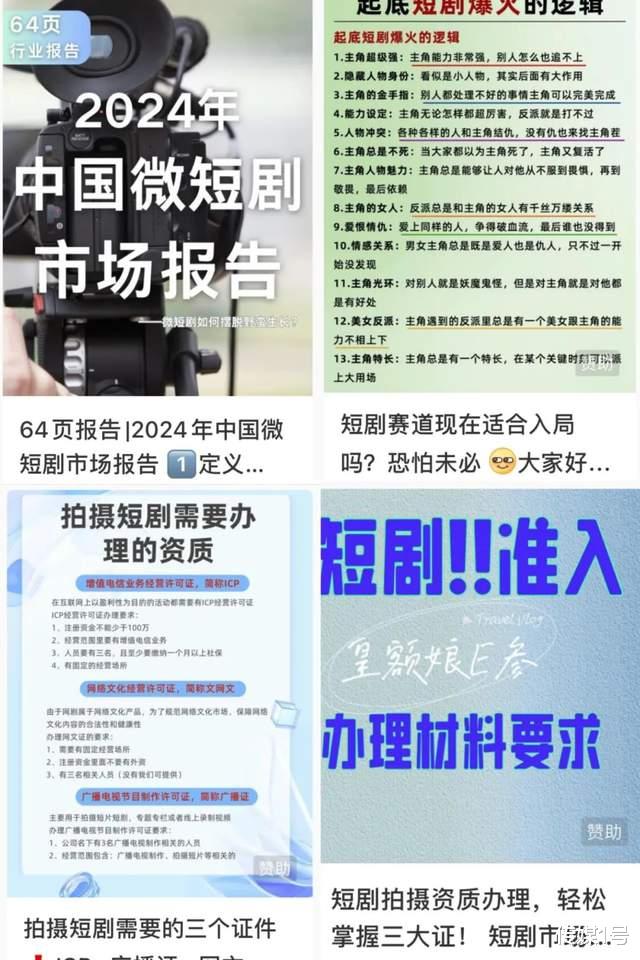 检索「微短剧」等关键词,除了排行榜作品推荐,微短剧市场报告、拍摄微短剧准入资质、短剧爆火逻辑等干货资源,应有尽有。而这也为微短剧更快在小红书扎根落地提供土地。