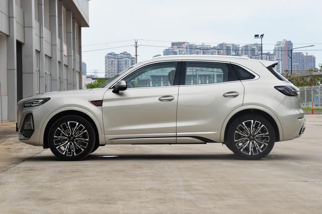 从侧面看上汽,我感觉它的整体比例还是挺协调的,比较舒展。它的车身拥有上下的腰线勾勒,把侧面是层次感表现了出来。车窗周围有镀铬亮条点缀,增加了精致感。它的轮毂为密辐的造型,配有255/45 R20的轮胎。尾部设计的挺饱满的,拥有熏黑的贯穿式的尾灯,底部还有双边双出的排气装饰造型,提升了运动感。