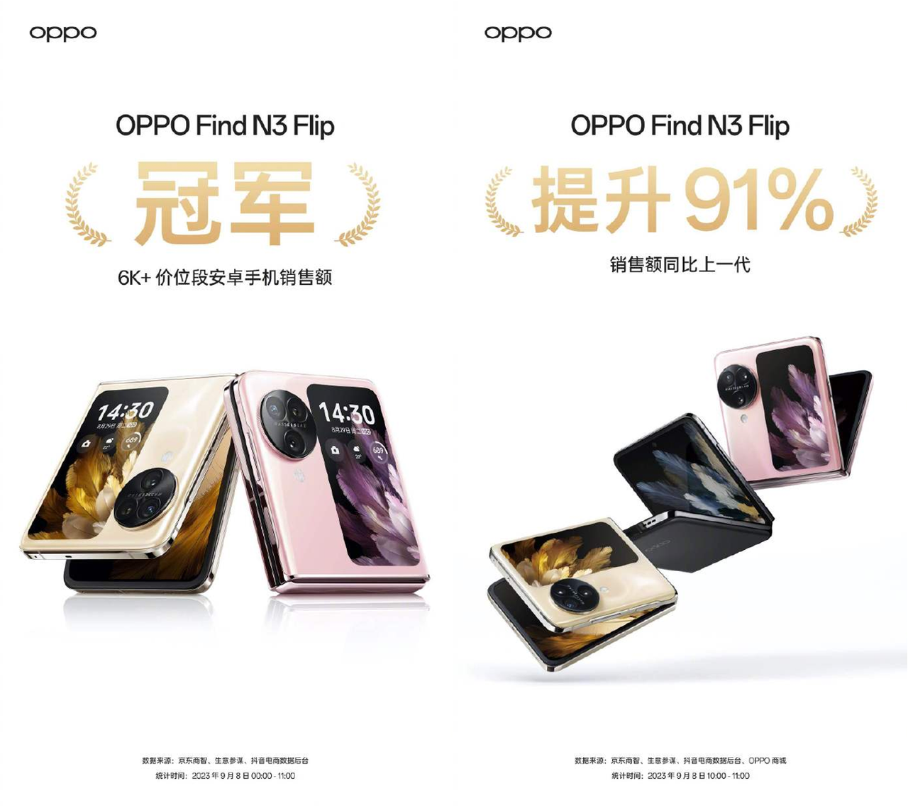 果然做折叠屏还得看OPPO。Find N3 Flip今日9月8号开售,直接取下冠军头衔,继承了Find N2 Flip的辉煌。从OPPO官方的战报来看,Find N3 Flip首销即巅峰,斩获了6K+价位段安卓手机销售额冠军,销售额同比上一代提升了91%,这就是实力啊。