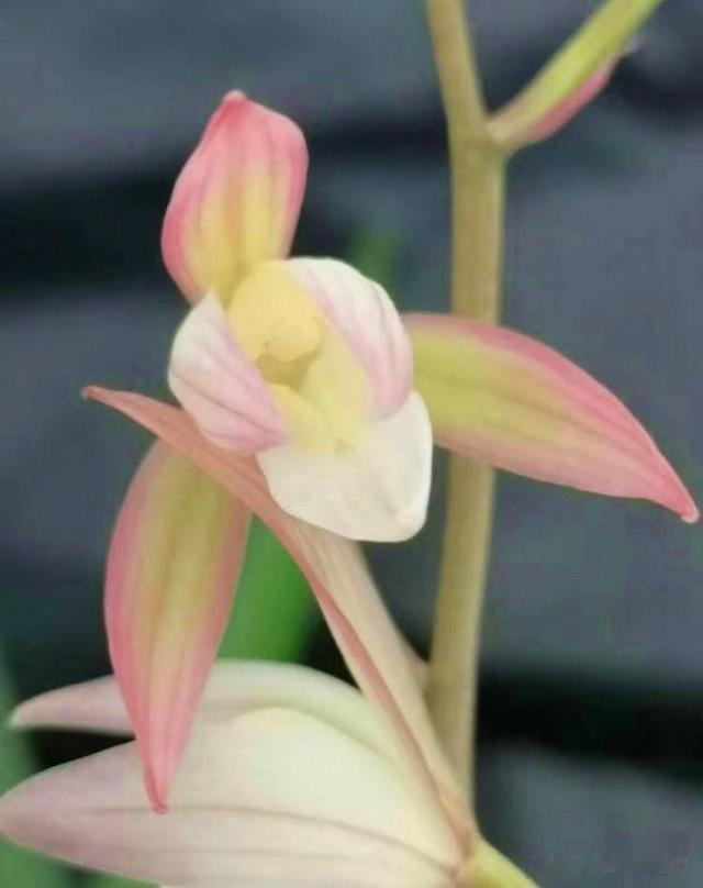 荷塘月色的花色非常特别,属于近年来流行的“彩素”,它的花瓣边缘是一抹浅粉,花心与花舌则是奶白色,两者之间的色彩过渡自然、和谐,堪称兰花中的绝世珍品,在众多兰花品种中,独一无二。当微风拂过,荷塘月色的花朵轻轻摇曳,如同夜晚池塘里月亮的倒影,令人陶醉。