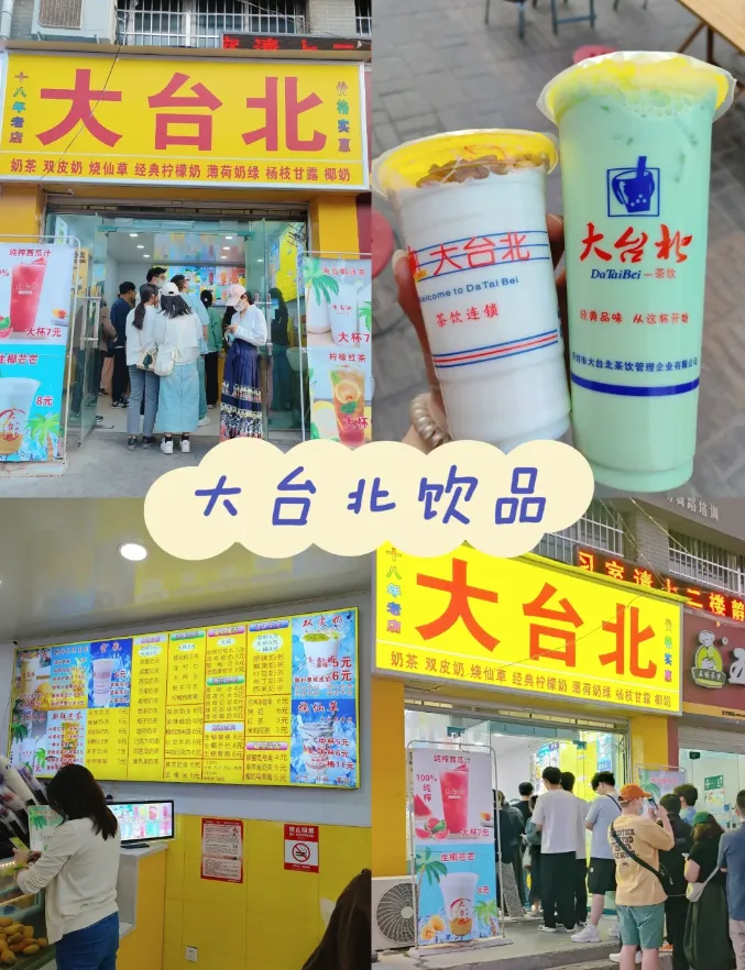 继续前行,大台北的茶饮摊位⭐⭐⭐⭐⭐吸引了我的注意。均价5元,就能品尝到超好喝的茶饮。薄荷奶绿、柠檬奶和双皮奶是我的最爱,每次去都要买上一杯,那清新的口感和香甜的滋味,真的让人欲罢不能。