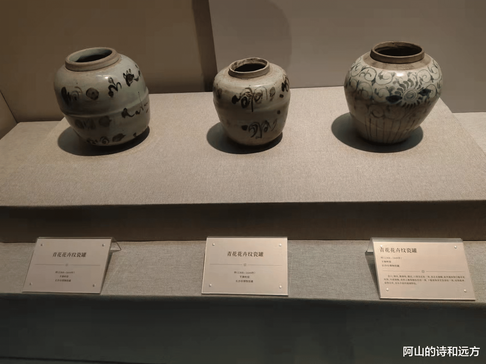 湖南出土的明代青花瓷大多产自景德镇,高等级墓葬一般随葬有景德镇窑的青花瓷精品。羊舞岭窑是传世产品较多的一处明代青花瓷窑,承接了元代仿烧龙泉窑的特点,器型粗大,制法粗糙,青花纹样率性奔放,青花罐传世较多,独具一格。