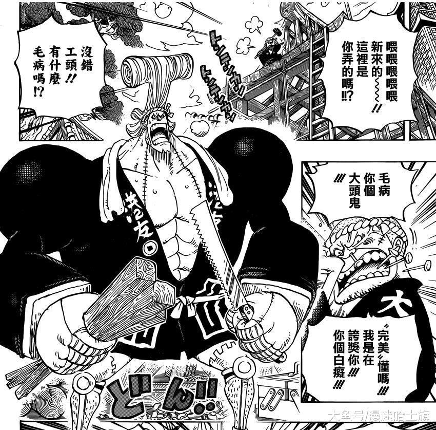 最后一个登场的是斩人鬼(其实是被诬陷的)-索隆。因为身负秋水而引来祸端的索隆,目前已经用切腹的小刀斩了和之国的官员。虽然我个人认为这只是为了呼应一下鹰眼的小刀,但是显然这一斩有一次引发了山索两边粉丝的争论。
