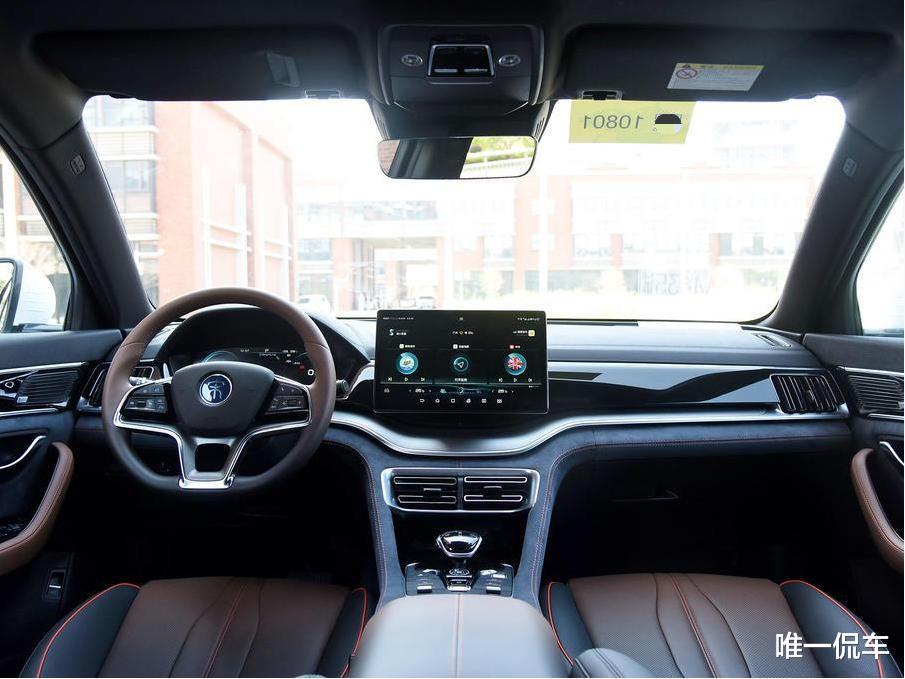 内饰方面十分有亮点,采用渐变色彩元素、高档皮质材料及双缝线工艺诠释奢华内饰风格,12.8英寸中控屏搭载DiLink 3.0系统流畅,支持手机远程控制,并带有手机NFC钥匙,支持部分国产手机型号,在智能驾驶辅助系统和安全配置方面也非常全面,许多车型没有配置的并线辅助、遥控驾驶和全息透明影像系统(简称车底影像),车底影像与540°全景影像功能相同,驾驶过程几乎没有死角。