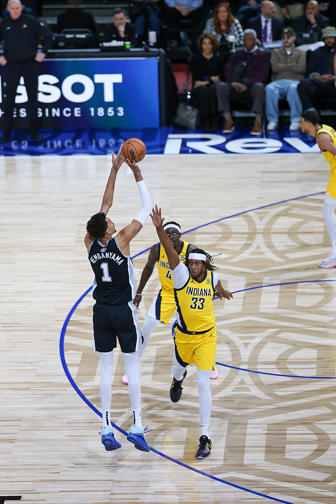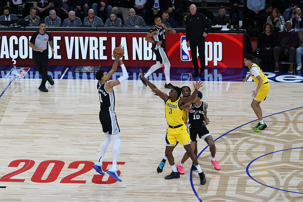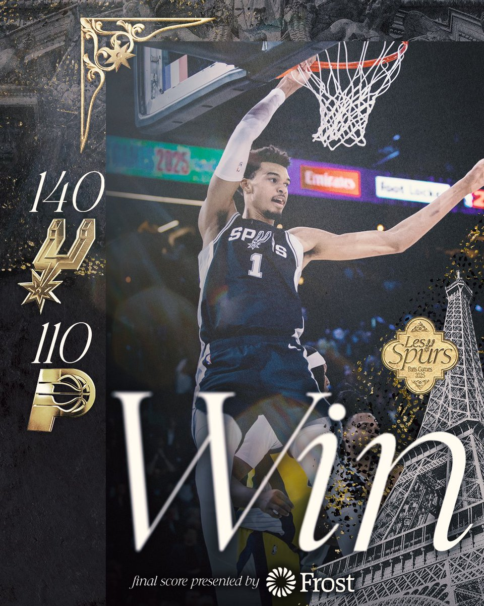 北京时间1月24日,NBA常规赛在法国巴黎举行了一场备受瞩目的法国赛。在这场比赛中,马刺队以140-110的比分大胜步行者队,成功终结了常规赛的三连败。而马刺队的当家球星文班亚马,在自己的家乡父老面前,更是狂砍30分,成为全场最耀眼的明星。