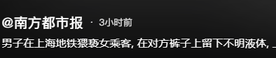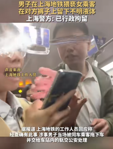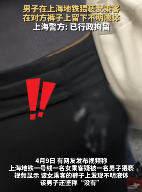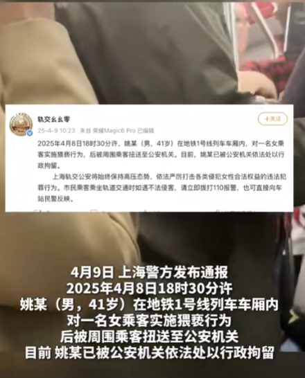 4月8日,晚高峰时段的上海地铁1号线,一名男子当众对女乘客实施猥亵行为。