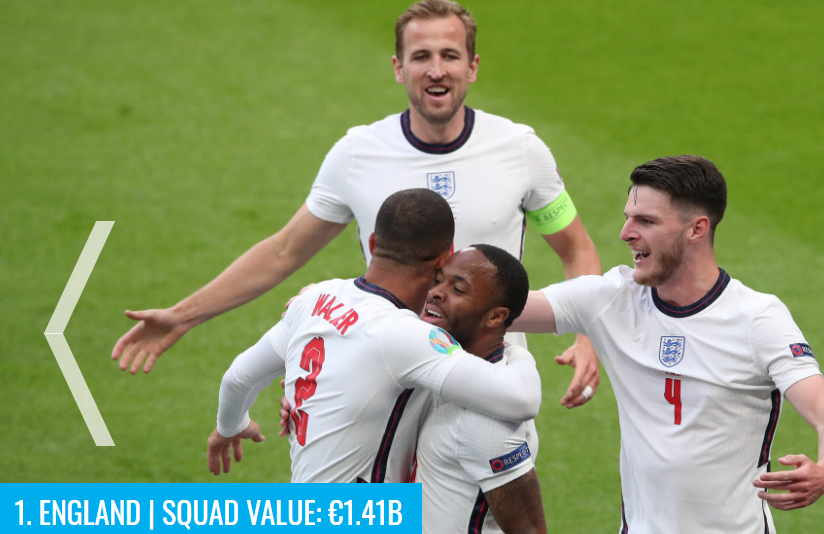 在前十名中,欧洲国家队占据了8名,只有两大南美豪强阿根廷国家队(7.222亿欧元)和巴西国家队(9.271亿欧元)能挤进前十,但也只能排名第六和第四。另外葡萄牙国家队(10.3亿欧元)、法国国家队(12.2亿欧元)和英格兰国家队(14.1亿欧元)分列前三位,他们很将是本届德国欧洲杯的最大热门。这些国家人才济济,德国国家队的球员总身价为6.28亿欧元,还不到英格兰国家队的一半,几乎是法国国家队的一半。这在一定程度上说明了德国国家队主教练纳格尔斯曼在今年夏天即将举办的本土欧洲杯之前可供选择的球员数量并不多。