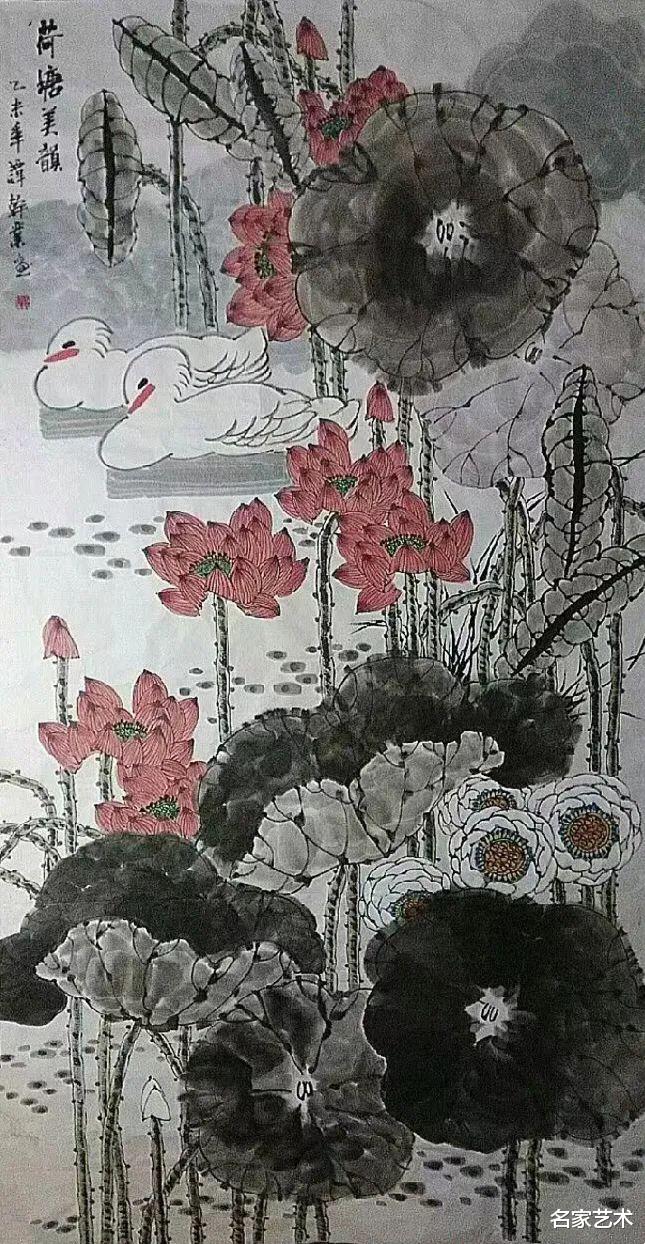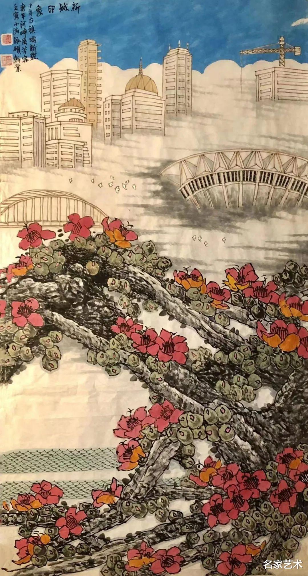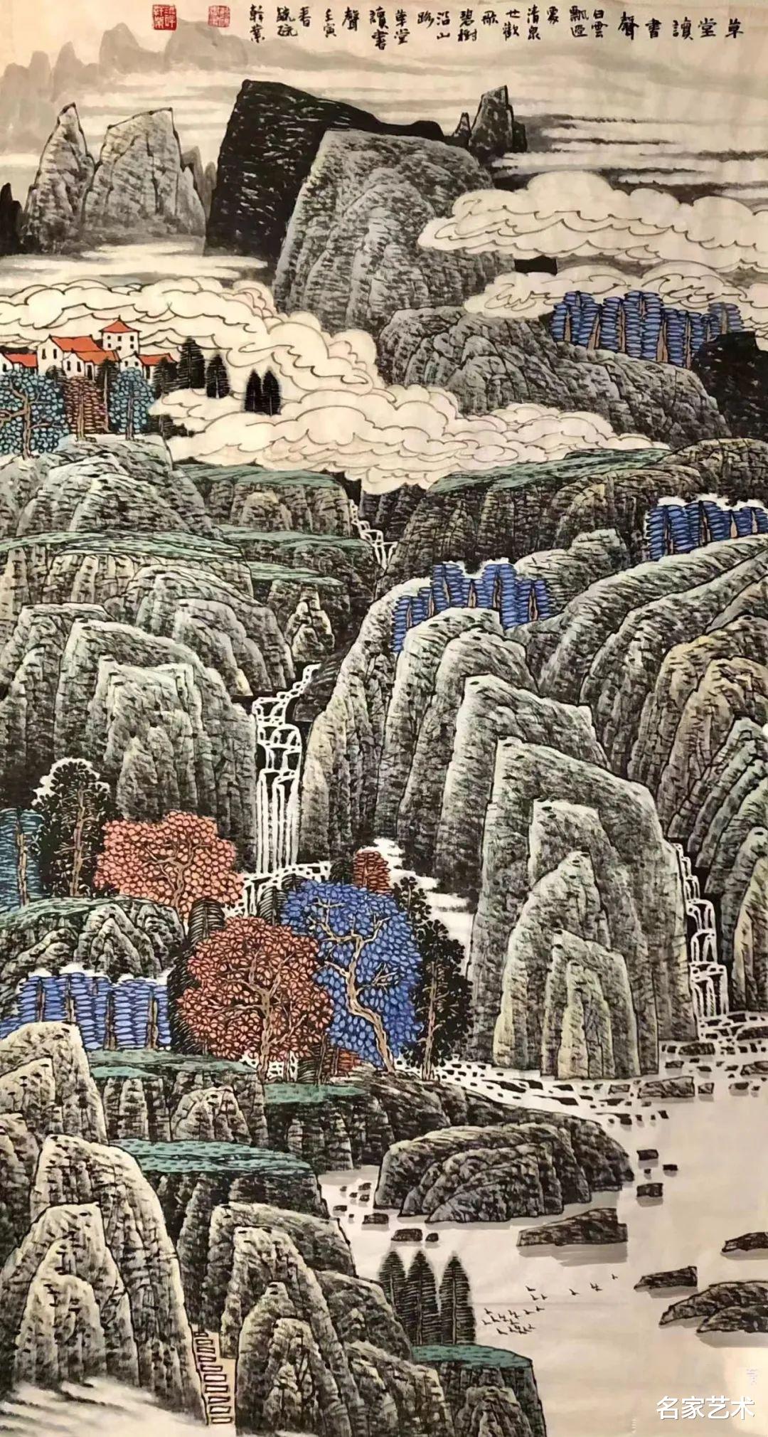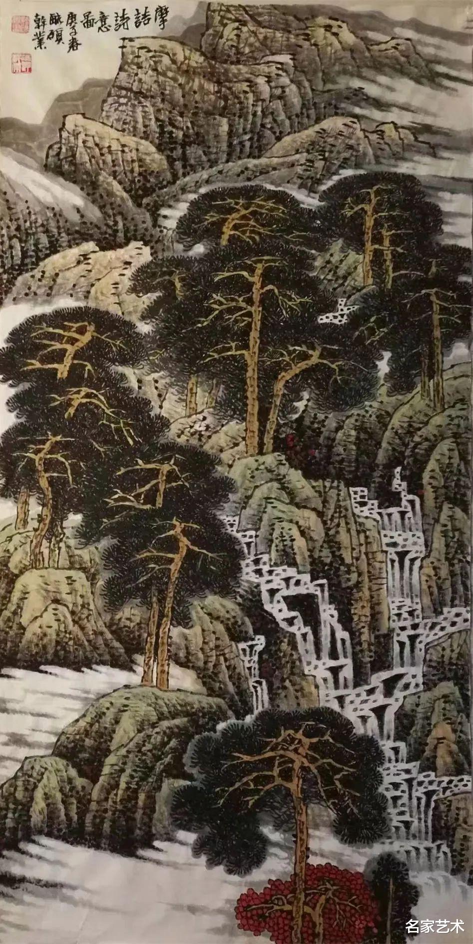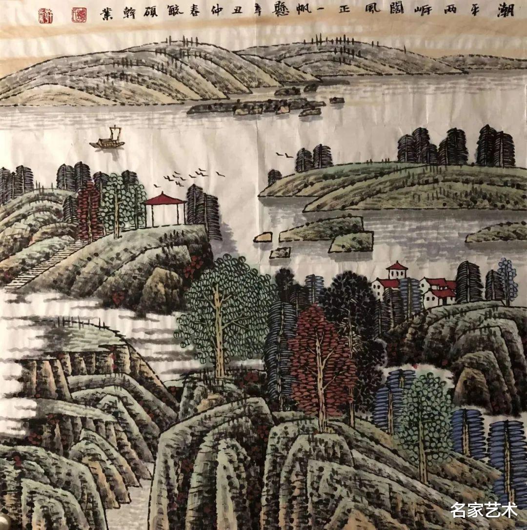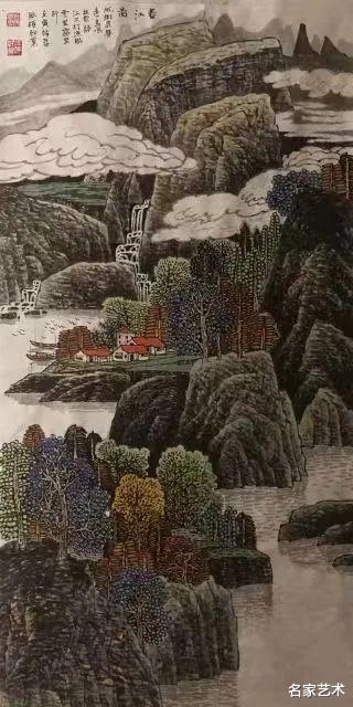 三十余年,创作大量的山水、花鸟、和书法作品。在山水画方面,曾对李可染山水画情有独钟,在这方面下了一定的功夫。喜欢积墨法、画工较细致,在李家山水积墨法的基础上,吸收了龚贤、石涛、渐江、张大千、钱松岩等画风,逐步形成了自己独特的有装饰风格的小青绿山水。