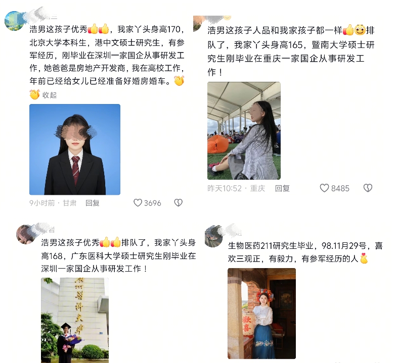 点开评论区,简直像打开婚恋网站后台: