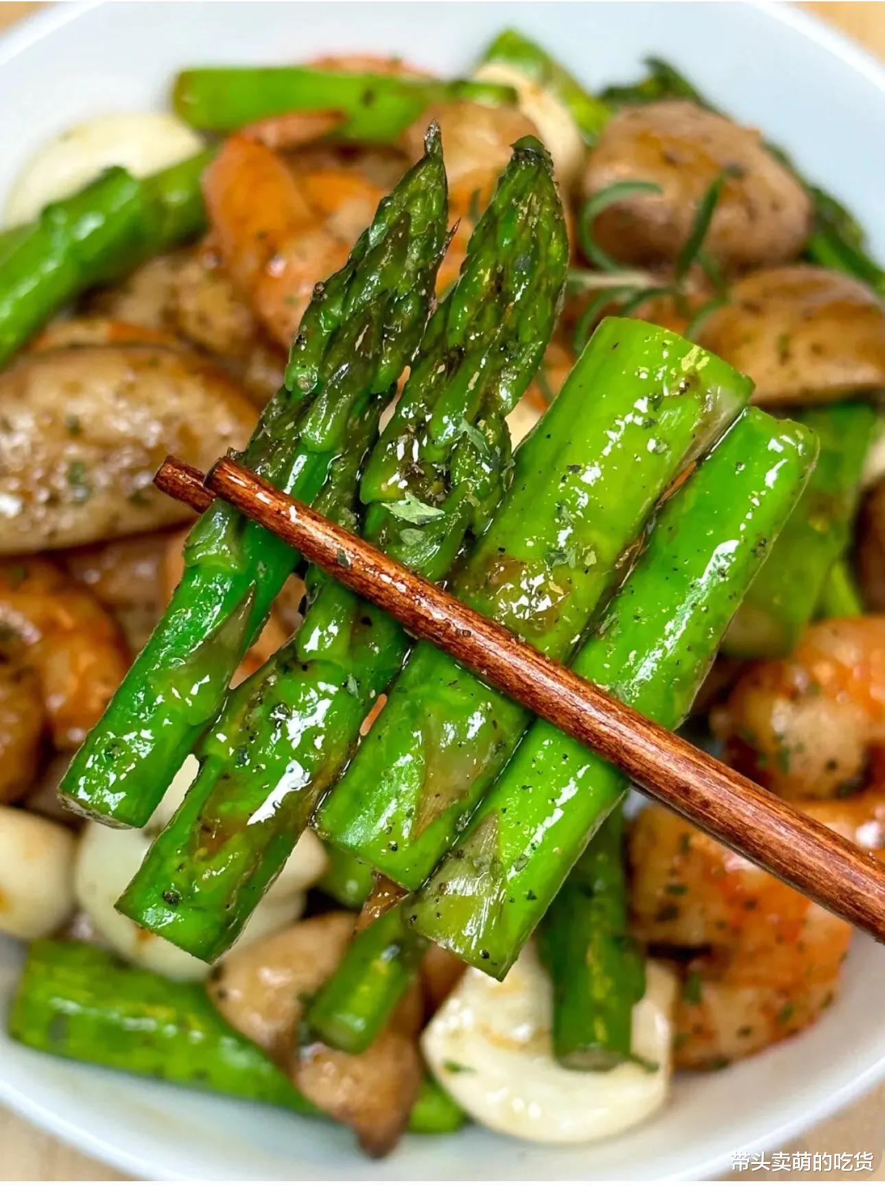 主要食材:新鲜大虾,口蘑,芦笋,蒜片,姜片,葱段,料酒,生抽,胡椒粉,蚝油,高蛋白低脂肪的虾仁,营养丰富,是正在长身体的小朋友,和年老的长辈都非常适合的美食,芦笋炒的口味清淡,不管是减脂还是家常吃都完全没问题。