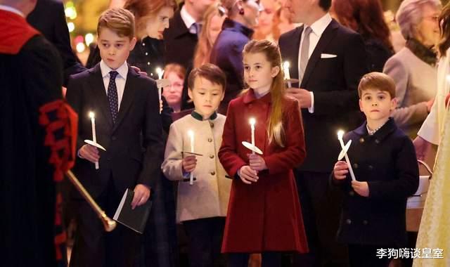 2022年白金禧年庆典上,6岁的沃尔夫身穿深蓝色外套,站在碧翠丝公主与父亲之间,成为首个在重大王室活动中站C位的非血缘成员。