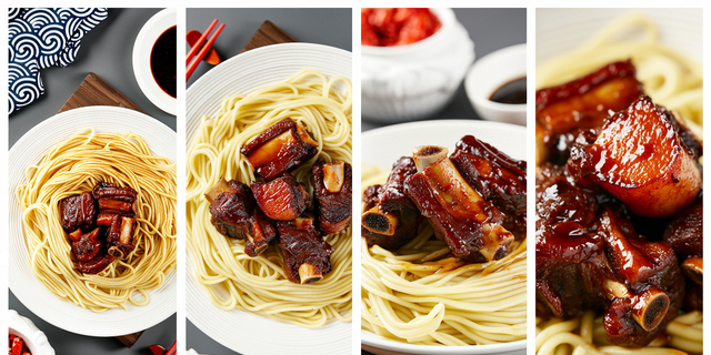 面条吸收了排骨的精华,变得滑润而有弹性,与排骨的鲜美完美融合。香气扑鼻,让人垂涎欲滴,仿佛能透过文字感受到那股诱人的香气。