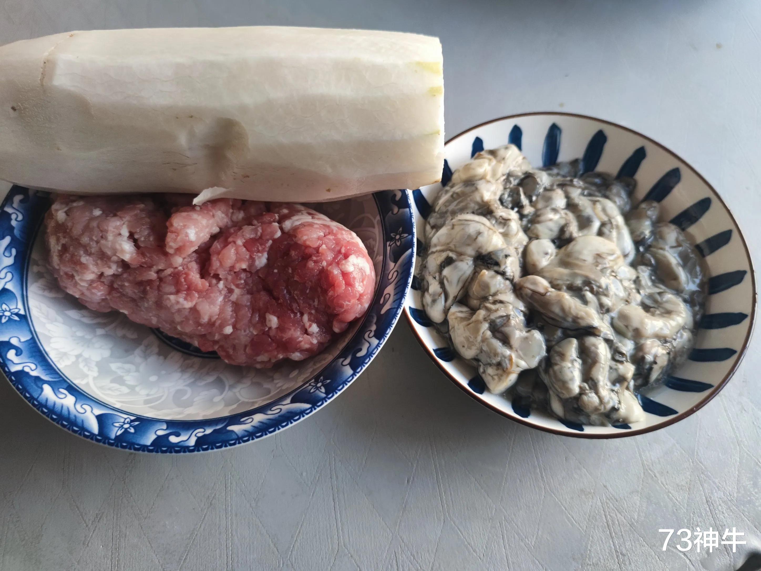 1.萝卜刮去外部老皮清洗干净,猪肉(三肥七瘦)斩剁成馅,海蛎子清洗干净后备用。