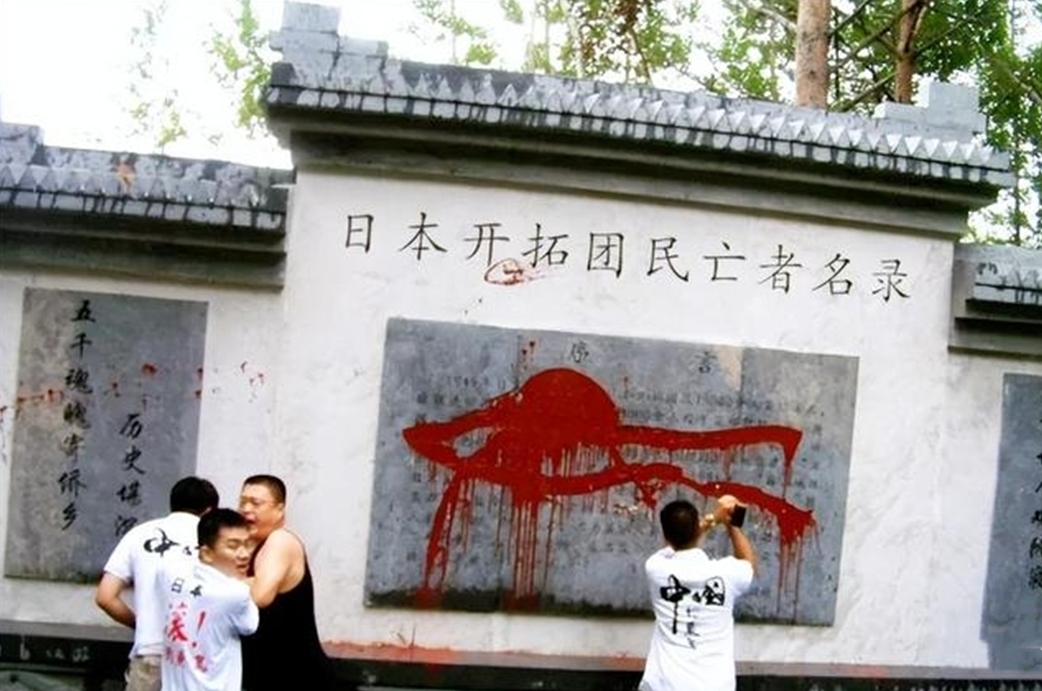 于是他们又拿出随身携带的红油漆,将碑文中列出的日本战犯名单涂抹得一干二净。