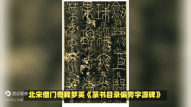释梦英《篆书千字文》之四:北宋僧门奇释梦英《篆书目录偏旁字源碑》赏析:释梦英《篆书目录偏旁字源碑》全图。北宋僧门奇释梦英《篆书目录偏旁字源碑》是北宋咸平二年释梦英与郭忠恕共同创作的作品,现藏于西安碑林博物馆。碑身高300厘米,宽99厘米。碑体一行,隶书。目录17行,行33字,篆书,释字、自序、答书及衔名11行,行字不等,楷书。碑阴刻《京兆府小学规》,梦英书偏旁字源并题额,郭忠恕书释字,梦英字序,郭氏答书及衔名,安文璨刻,元守全等立石。