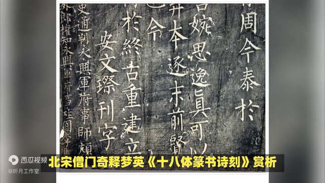 释梦英楷书主要学柳公权,其书《夫子庙堂记》可称柳书嫡脉,但骨气意度稍弱。释梦英楷书《夫子庙掌记》之四:北宋僧门奇释梦英《十八体篆书诗刻》赏析。释梦英《十八体篆书诗刻》之一:北宋著名僧门奇释梦英《十八体篆书诗刻》释梦英,宋代高僧,善篆书,其《十八体篆书诗刻》受宋太宗喜爱,命人刻于西安文庙前供学子学习。