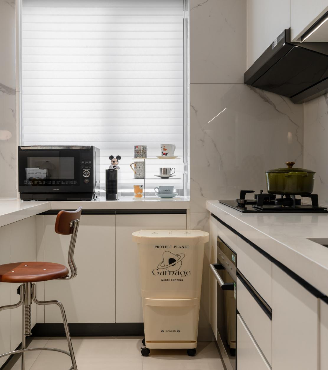 厨房整体以干净的白色为主,可以提亮空间,也能让空间显得更加洁净。