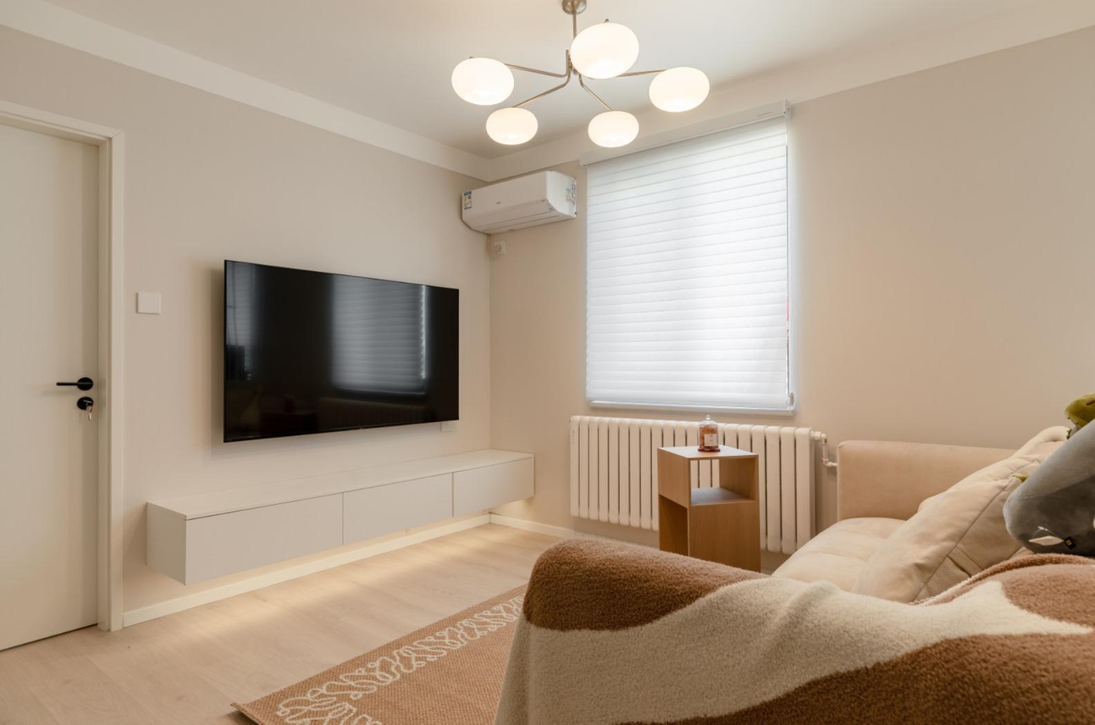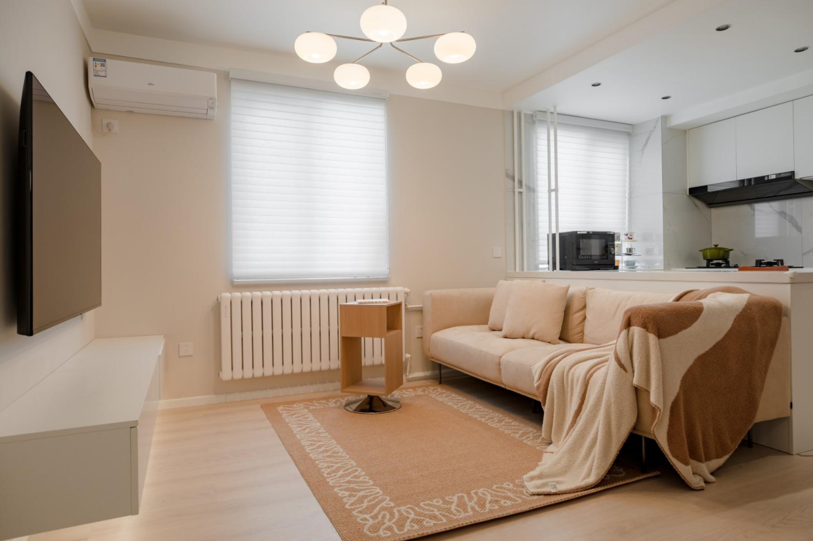 墙顶面刷上统一的奶油色乳胶漆,再搭配上燕麦色软装,以及清浅的木地板,整个空间都透着一抹温柔的质感。