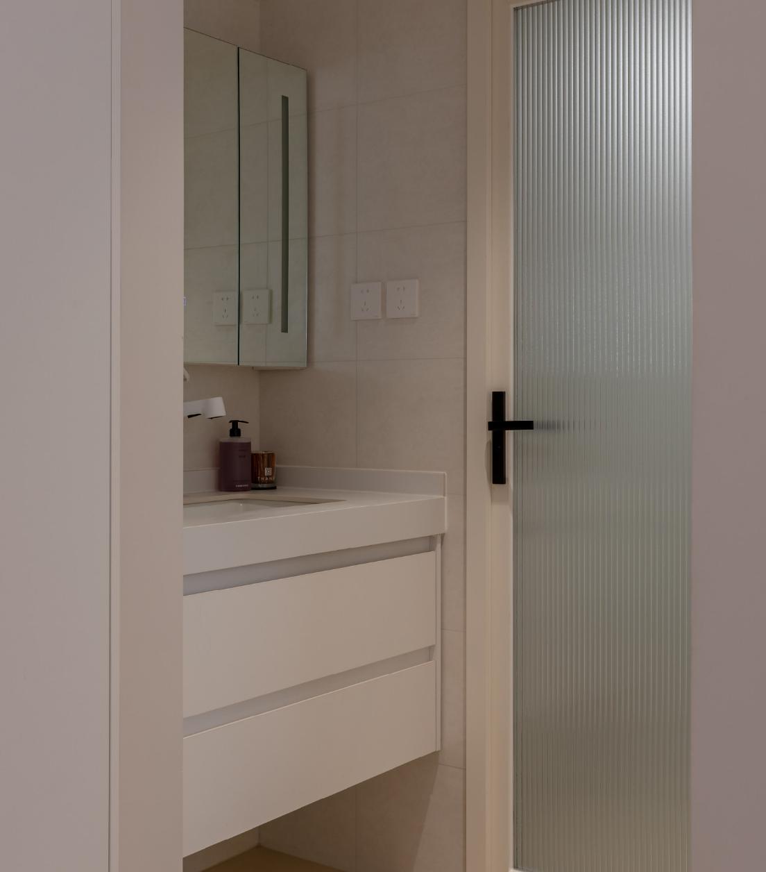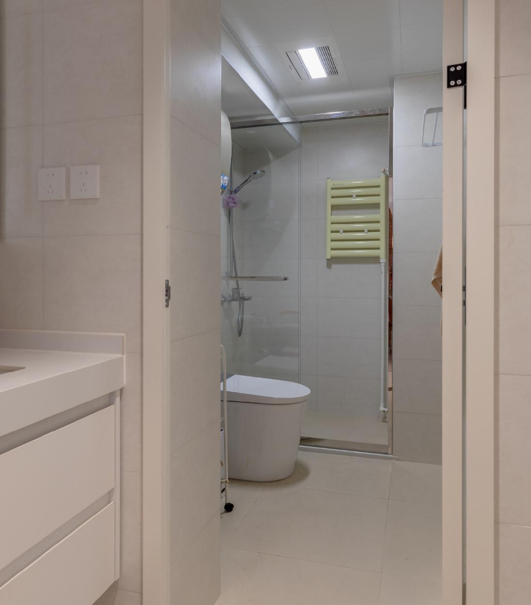卫生间的设计比较常规,洗漱台独立在外,内部干湿分离,既提升了生活效率,又增加了空间的整洁度。