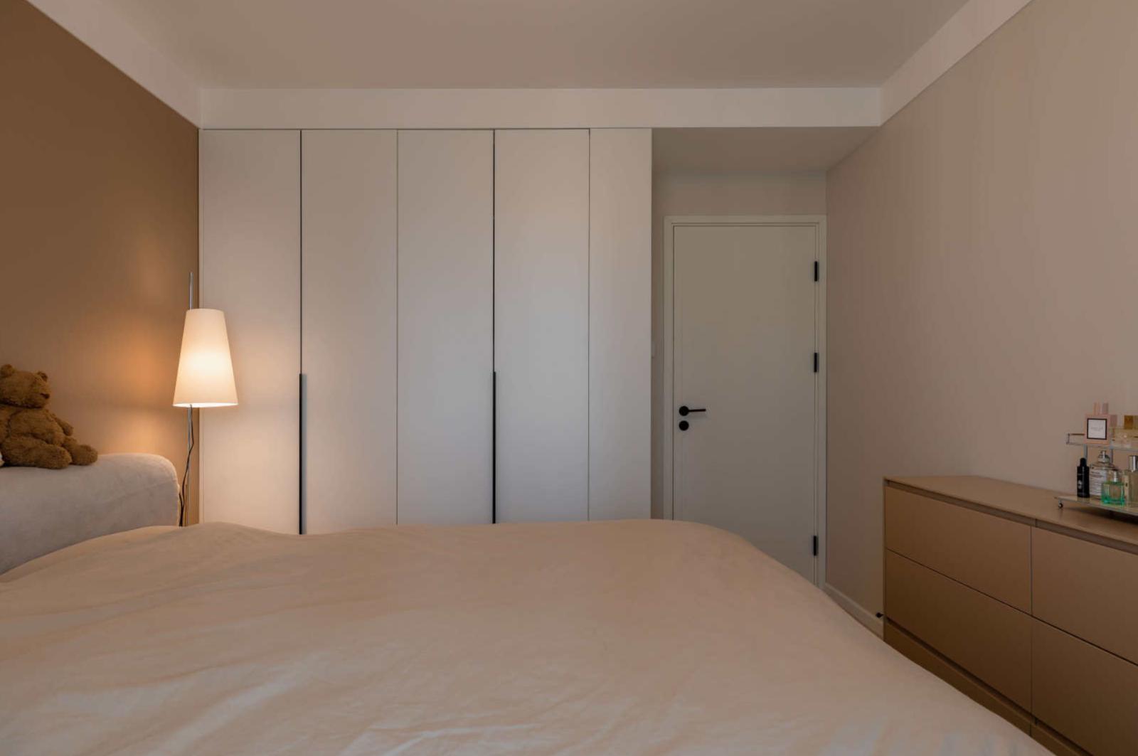 卧室在原有的空间基础上,向客厅做了扩大处理,有效改善了空间舒适性。床头墙面和窗帘均选择脏粉色,也充分体现了屋主内心的浪漫与小美好。