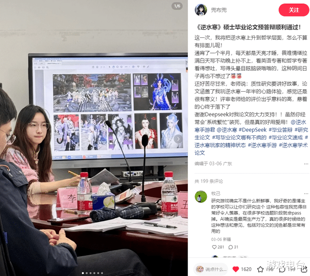 社交平台上不乏大学生、硕士、博士在制作毕业论文时,以逆水寒为论文题目,探讨游戏内的哲学关系、历史现象、社会研究,还有传统文化方面等,从科学层面为逆水寒站台。