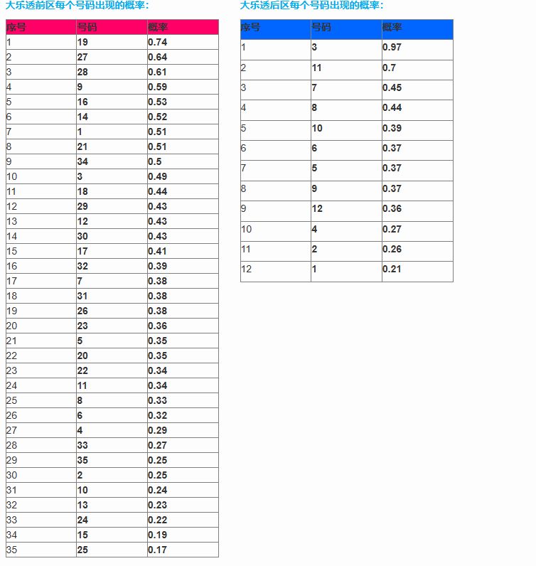 概率前10:19, 27, 28, 9, 16, 14, 1, 21, 34, 3,;